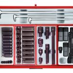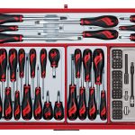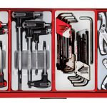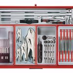 A comprehensive 1055 piece tool kit covering just about every type of regularly used technician's tools. The kit is built up using the unique Teng Tools TC tray system and is supplied in an 8 series ball bearing top box/middle box/roller cabinet combination. Brackets are included for securing the middle box to the roller cabinet. The side plate is also included for hanging additional tools on the outside using Teng Tools hooks.