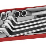 11 piece double ring spanner set ranging from 6x7mm to 30x32mm made from chrome vanadium steel with a satin finish. DIN 838/ISO 3318. The set is supplied in a unique Teng Tools drawer width TTX tray and can be used either on it's own or as part of the Teng Tools TC control system. The tray features a removable hinged click lock lid and dove tail joints which enable different trays to be locked together and used as trays in Teng Tools tool boxes and roller cabinets. All of the tools in the set have their own individual place so lost tools can easily be identified. (560x110x60mm, 2.9 kilos).
