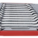 12 piece metric spanner set with the same dimension at both ends. The 12 point ring head is set at a 15° angle. Made from chrome vanadium with polished heads and a satin finish. The set is supplied in a unique Teng Tools TC tray and can be used either on it's own or as part of the Teng Tools TC control system. The tray features a removable hinged click lock lid and dove tail joints which enable different TC trays to be locked together and used as trays in Teng Tools tool boxes and roller cabinets. All of the tools in the set have their own individual place so lost tools can easily be identified. (265x142x50mm, 1.0 kilos).