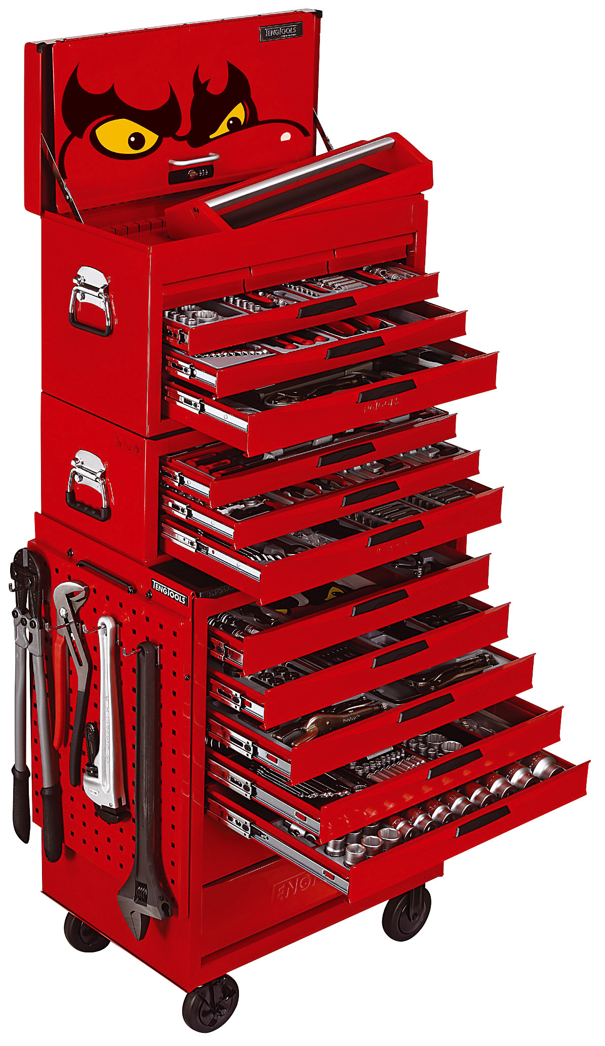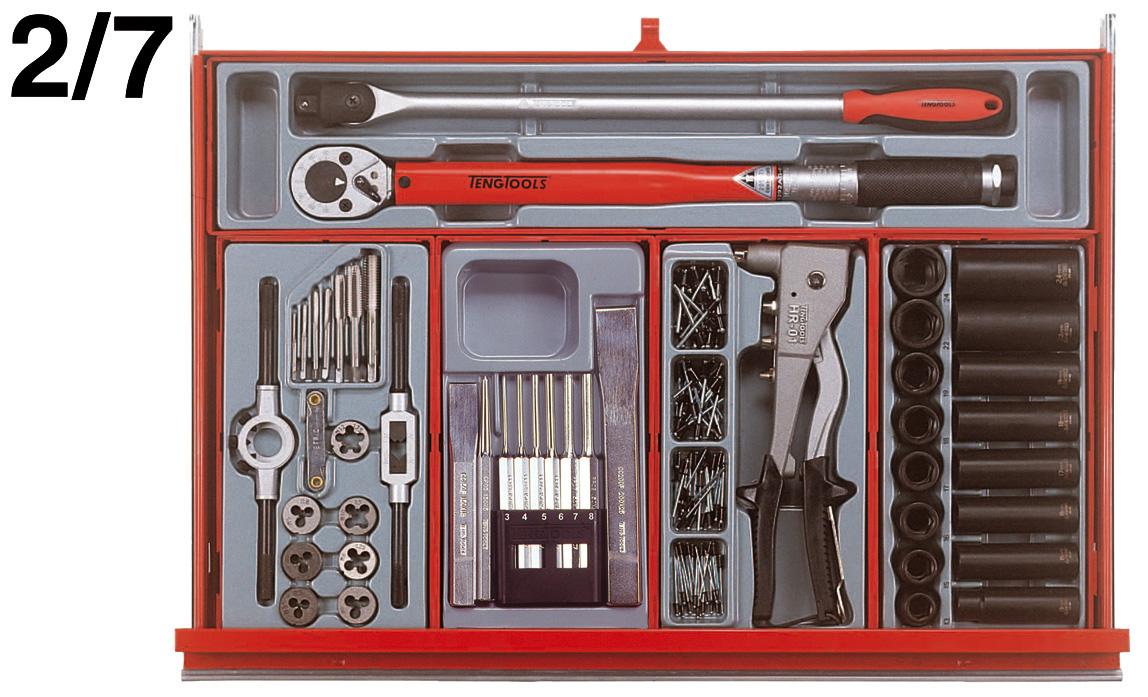 A 600 piece tool kit containing virtually every tool you will ever need. Supplied in the unique 8 series ball bearing slide top box/middle box/roller cabinet combination together with the Teng Tools side plate.