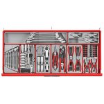 A comprehensive 622 piece tool kit supplied in the brand new 37" wide roller cabinet complete with 7 drawers with individual opening and the new wooden work bench top plate that can be used to create a useful working area. The kit is built up using the Teng Tools TC tray system and incorporates several new sets including the new TTZ trays.