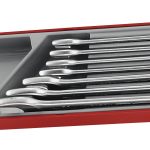 7 piece metric combination spanner set covering 20 to 32mm. The set is supplied in a unique Teng Tools drawer width TTX tray and can be used either on it's own or as part of the Teng Tools TC control system. The tray features a removable hinged click lock lid and dove tail joints which enable different TC trays to be locked together and used as trays in Teng Tools tool boxes and roller cabinets. The tools are held in place using the Teng Tools two colour pre-cut EVA foam which has been computer milled to house each specific tool. The top layer of the foam is black and the bottom layer is red so that as soon as a tool is taken out, the shape of the tool is clearly visible. The EVA foam is also etched with the size or description of the tool next to it's position so that if a tool is missing not only can the space be clearly seen but the missing tool can be identified quickly. (560x110x40mm).