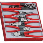 8 piece plier set made of chrome vanadium with plastic covered handles for grip and comfort. Includes side cutters, combination pliers, long nose pliers and water pump pliers. The set is supplied in a unique Teng Tools TC tray and can be used either on it's own or as part of the Teng Tools TC control system. The tray features a removable hinged click lock lid and dove tail joints which enable different TC trays to be locked together and used as trays in Teng Tools tool boxes and roller cabinets. All of the tools in the set have their own individual place so lost tools can easily be identified. (265x284x50mm, 1.8 kilos).