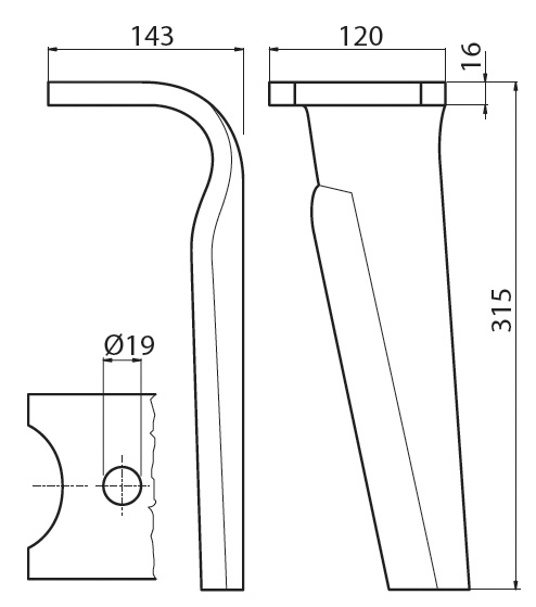 New Type Kuhn Quick Fit Tine (Left Hand)