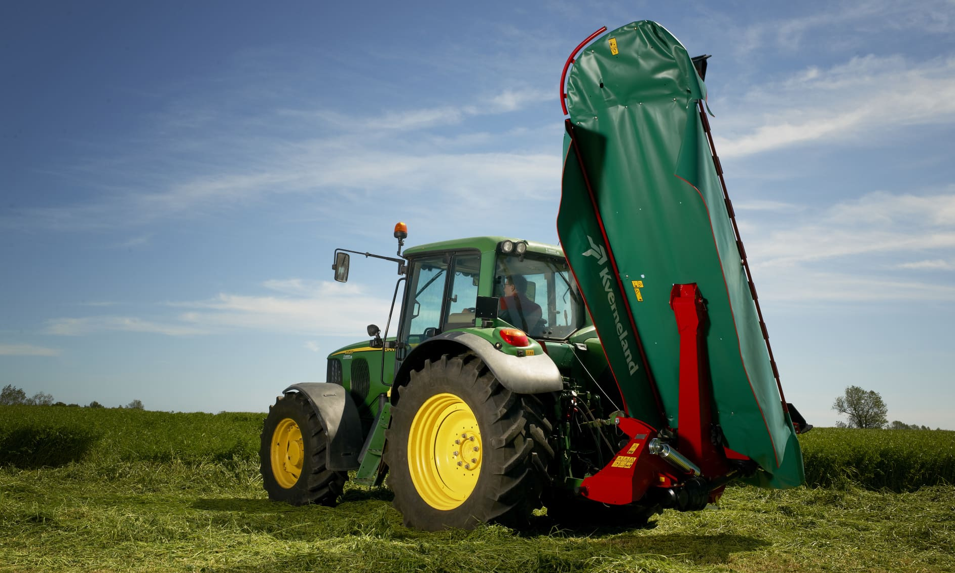 Kverneland 2800 M rear mounted range boast an extensive 2.80-4.00m working width with corresponding weights of only 805-1045kg, which means the machines can be operated with tractors starting from only 40hp, making these very attractive machines for farmers with smaller tractors, who still needs to cut substantial areas. Paired with the Kverneland 2828 F or 2832 F front mounted machine the joint working width is up to an amazing 6.80m.