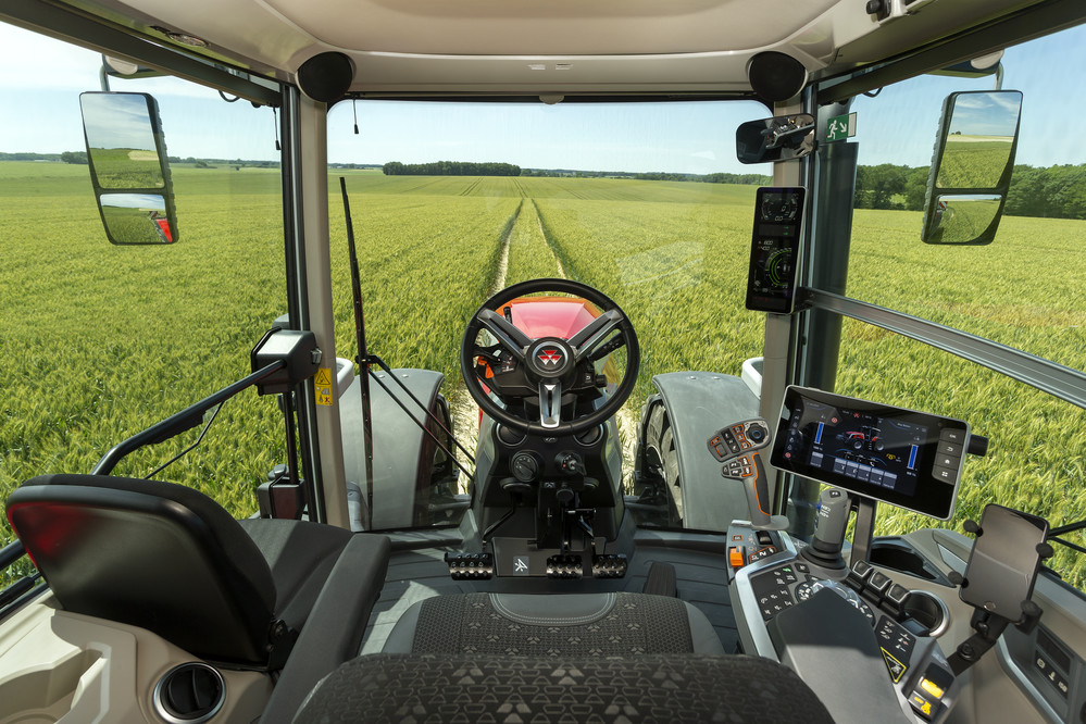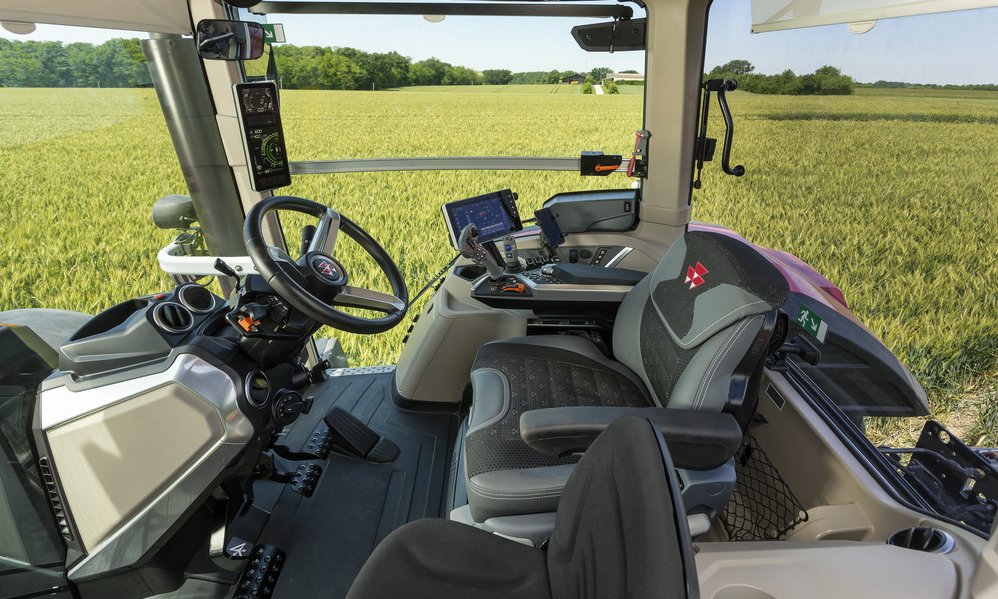 Cab and front axle suspension improves driving comfort while the new MF vDisplay Digital dashboard provides all needed information at a glance. The new armrest offers best in class