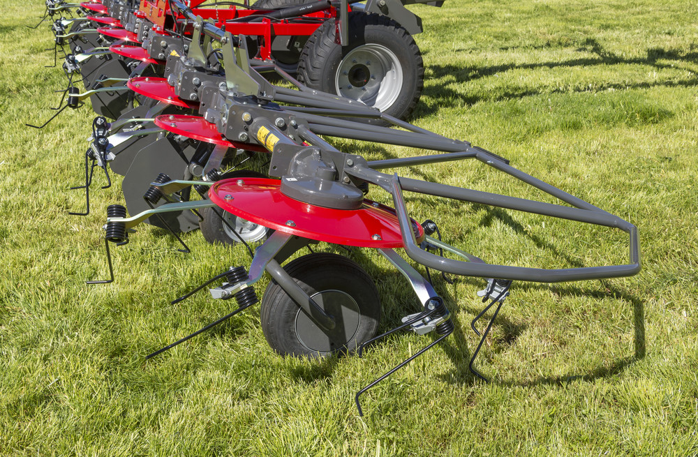 The MF TD Trailed Tedder Range offer wide working widths in a compact package. Ideal for use behind small tractors, these machines are well adapted for uneven and hilly terrain. The standard edge spreading function prevents loss of valuable forage on field headlands. The hydraulically folding function uses a single acting cylinder for simple synchronised folding. As with all Massey Ferguson hay tedders, the forage is picked up by the tines and turned gently, without damage. A light, loose and well mixed mat of forage is created, to help ensure a top quality end-product.