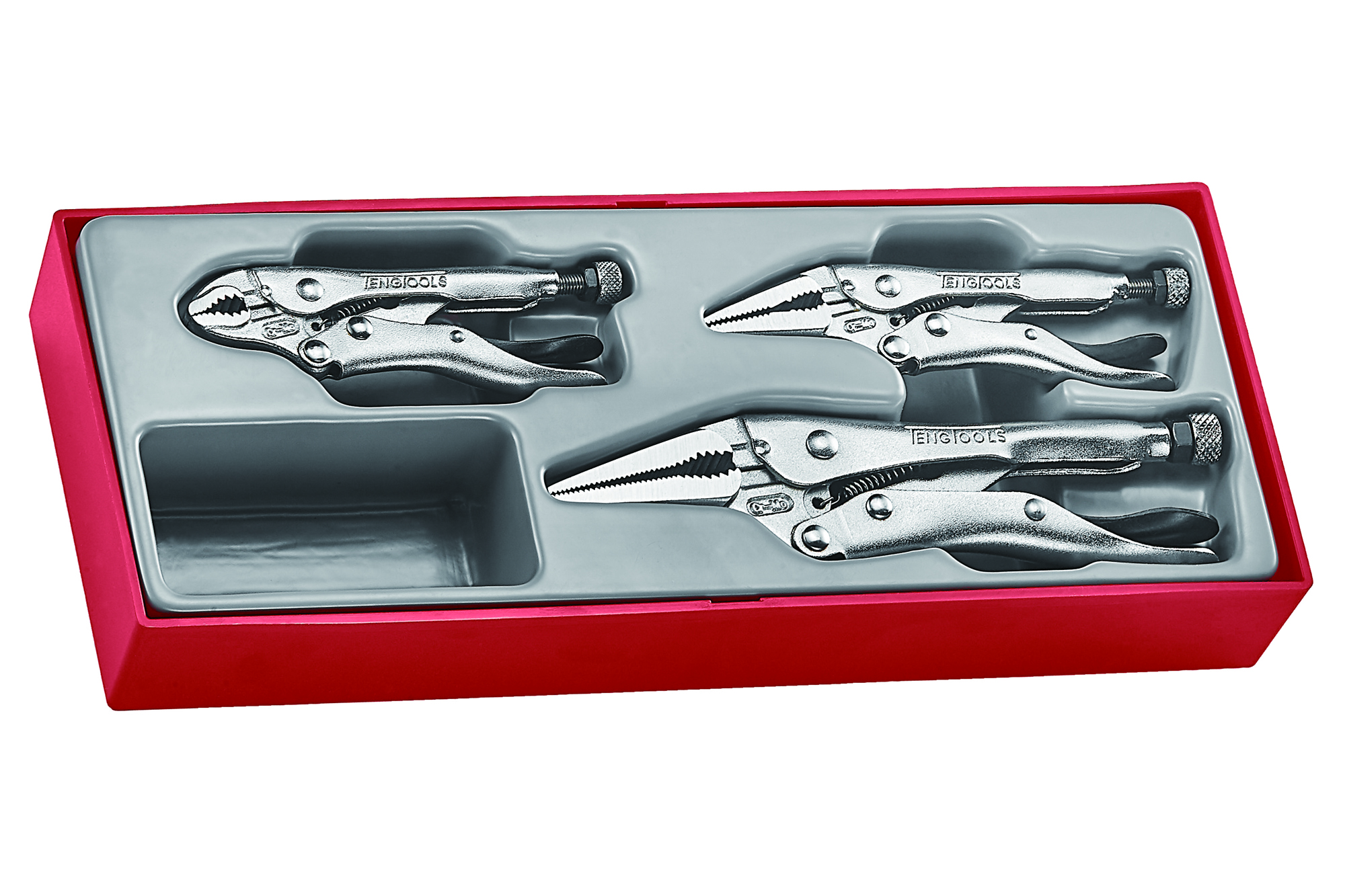 A storage tray half the size of a TTX tray with three of the most commonly used power grip pliers. Supplied in the unique Teng Tools TC tray with removable lid and dove tail joint for use on it's own or as part of the Teng Tools TC control system.