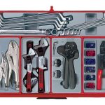 The Monster Mega Master tool kit really is the ultimate tool kit. A 53” wide 10 drawer top box sits on top of a 9 drawer full width roller cabinet both with all the Typically Teng features that you would expect from Teng Tools such as ball bearings, combination locks, etc. Inside you have over 80 individual tool trays containing over 1,100 individual pieces. It really is a set that covers just about every type of mechanics hand tool in one complete kit. (overall weight 365 kilos).